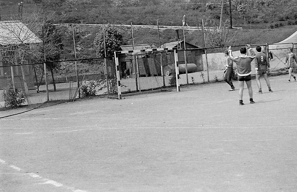 Это спортплощадка на склоне существует и сейчас, только там теперь очень современный комплекс, с отелем и стадионами.