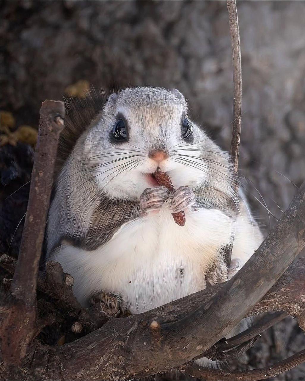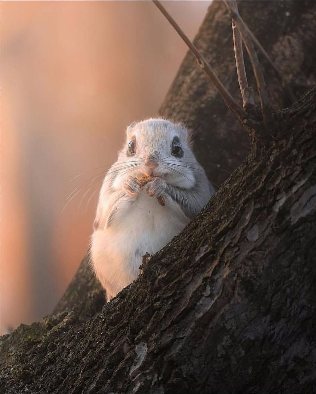 Фотограф заснял одного из самых милых жителей тайги — сибирскую белку-летягу. Эти животные стараются вести скрытный образ жизни, но автор всё-таки смог запечатлеть одну белку.
