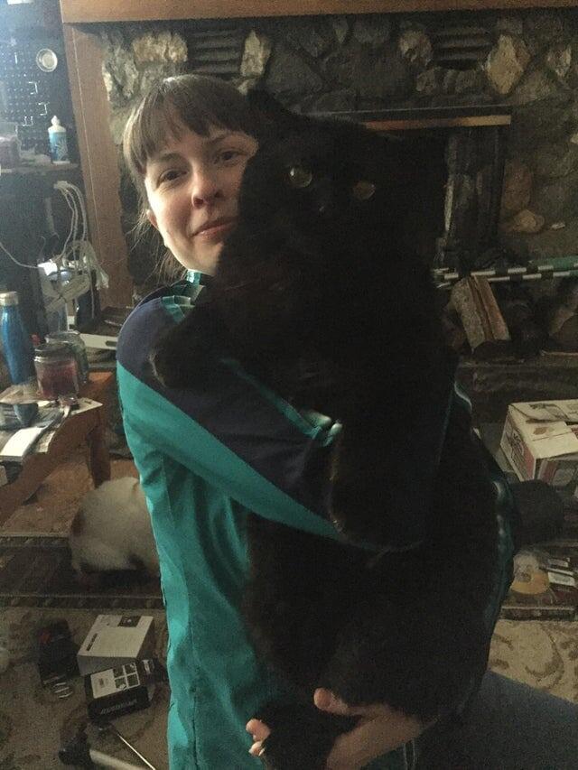 Кот в сравнении с девушкой ростом 165 сантиметров