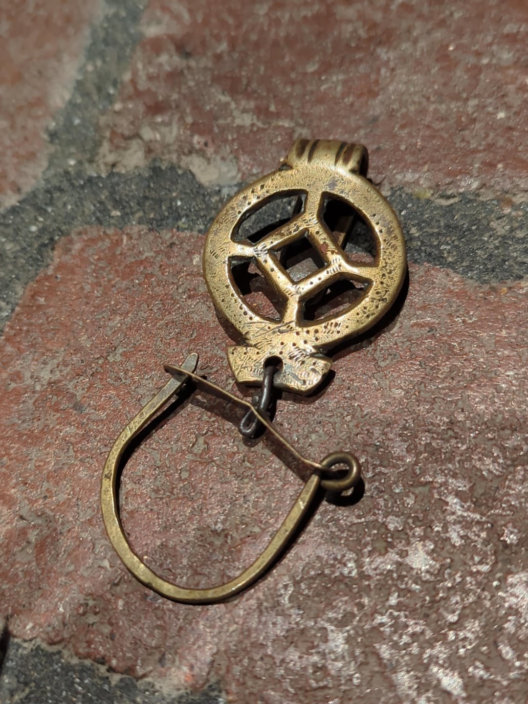 4. Небольшой металлический предмет с крючком, состоит из двух частей, соединённых проволокой