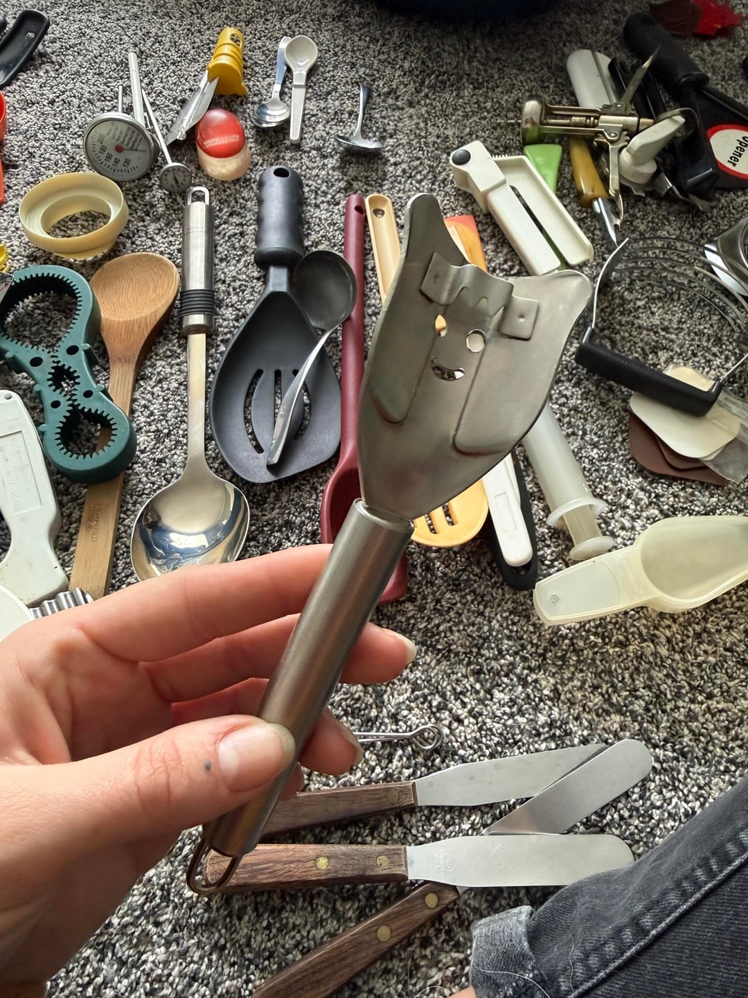 6. Кухонный инструмент с петлёй и лопаткой с отверстиями, обнаружен в ящике с посудой в доме бабушки и дедушки