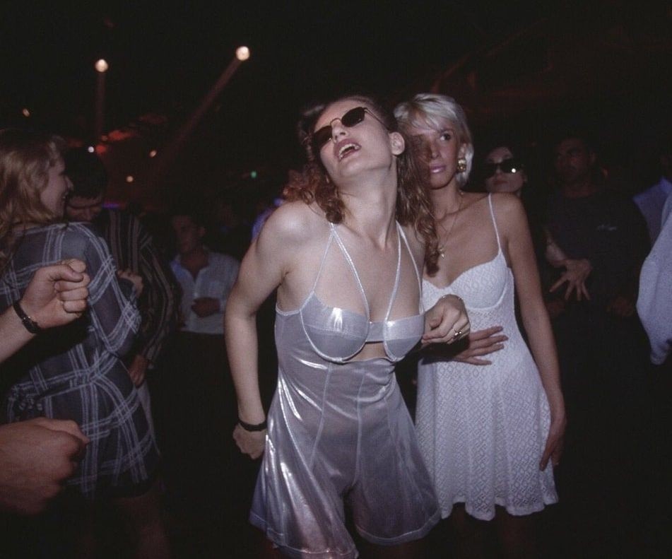 Девушки на дискотеке в ночном клубе «Титаник», Москва, 1995 год.