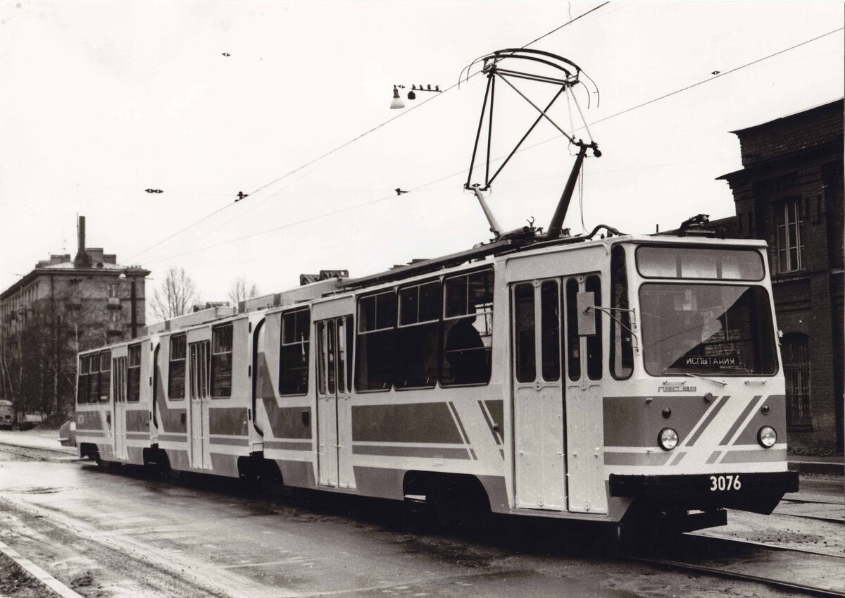 Уникальный трехсекционный трамвайный вагон ЛВС-89 проходит испытания на Литовской улице.