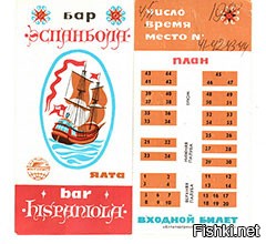 Билет в бар «Эспаньола» на четыре места. Ялта. Февраль 1983 года