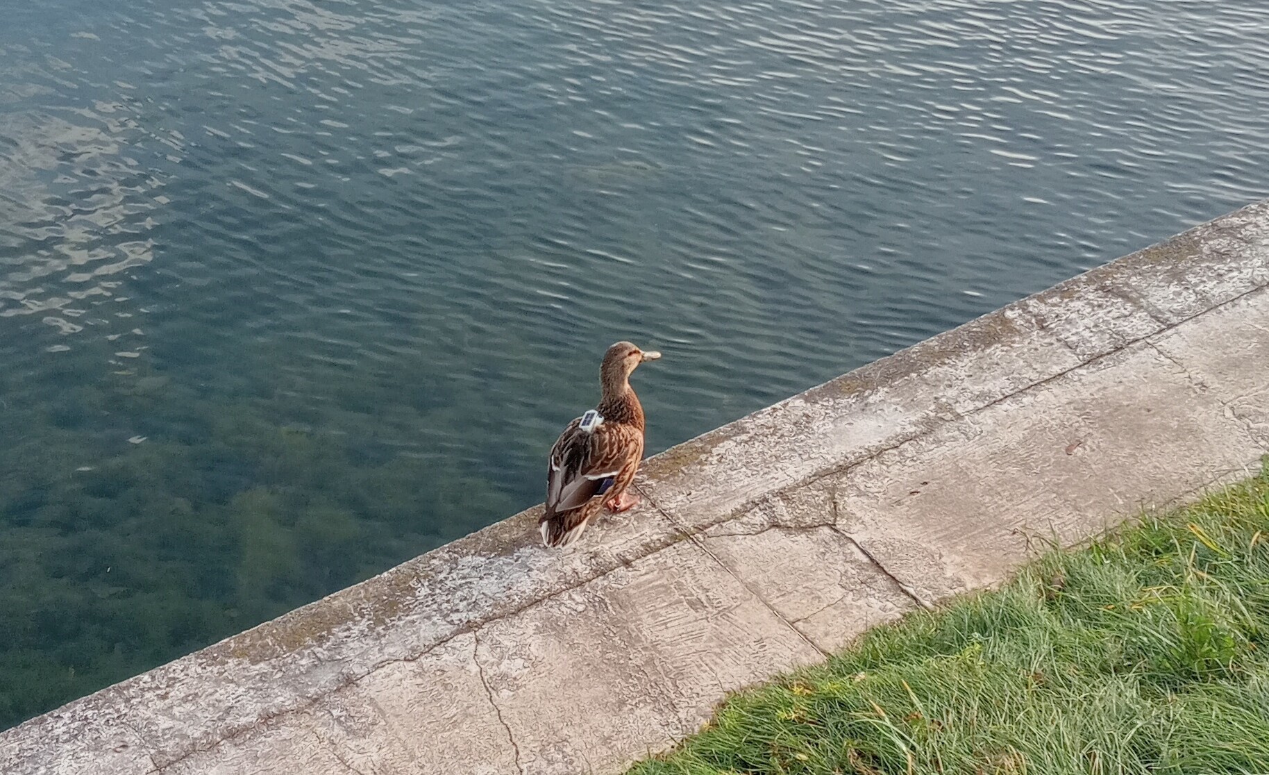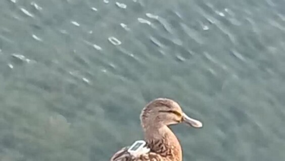 Утка вела себя очень странно. Она спокойно прохаживалась по берегу в стороне от своих сородичей. Не обращала внимание на окружающих. На спине было закреплено некое устройство, а на ноге что-то напоминающее кольцо. Но это ещё не всё.