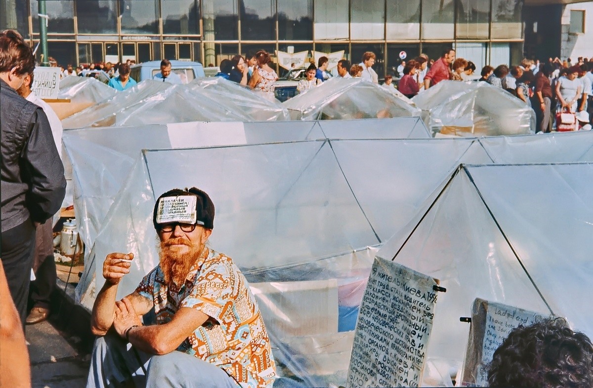 Палаточный городок у гостиничного комплекса "Россия", что на Москворецкой набережной.