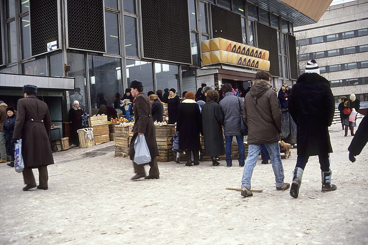 Рынки пользовались популярностью - там периодически можно было что-то добыть без очередей (если были деньги). На фото - Рижский рынок.