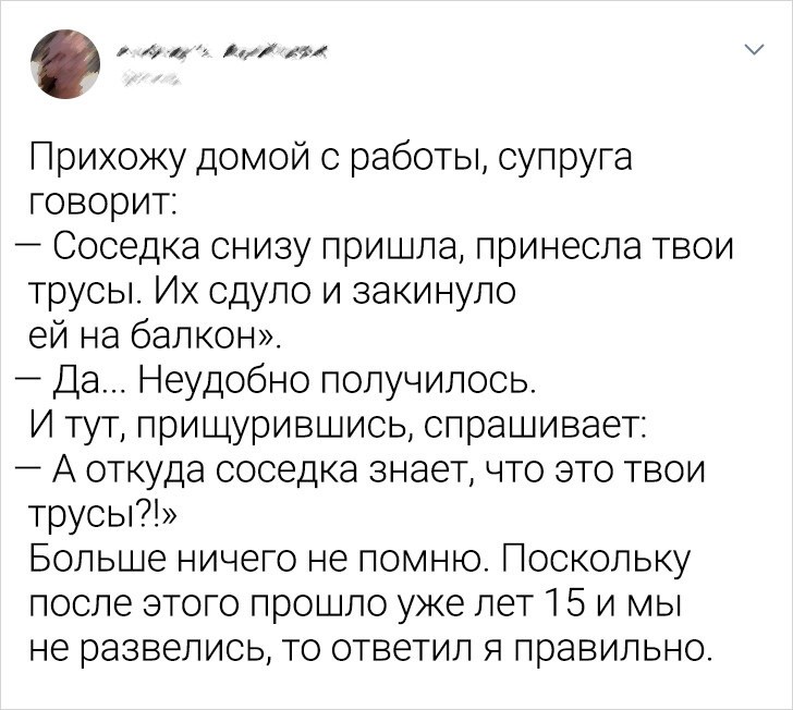 «Мы переехали в новый квартал, и, когда я пошел косить лужайку, сосед уже был там. Сказал, что он делает это для всех в качестве приветственного подарка»
