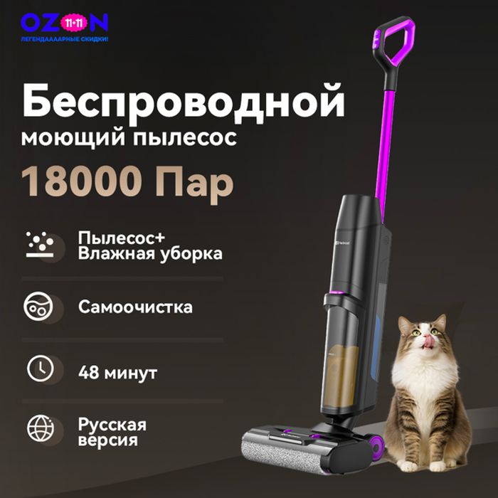Мощность 18 000 Па и идеальная уборка вдоль стен и под мебелью