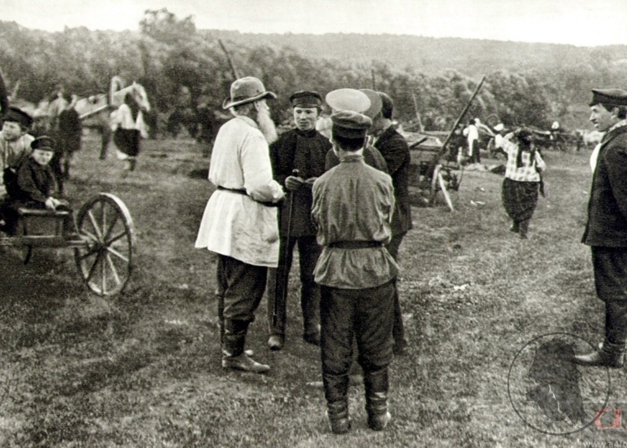 Толстой в сапогах по колено, с мешком семян за спиной, инструктирующий крестьян по французской системе удобрения полей. Именно так граф экспериментировал.