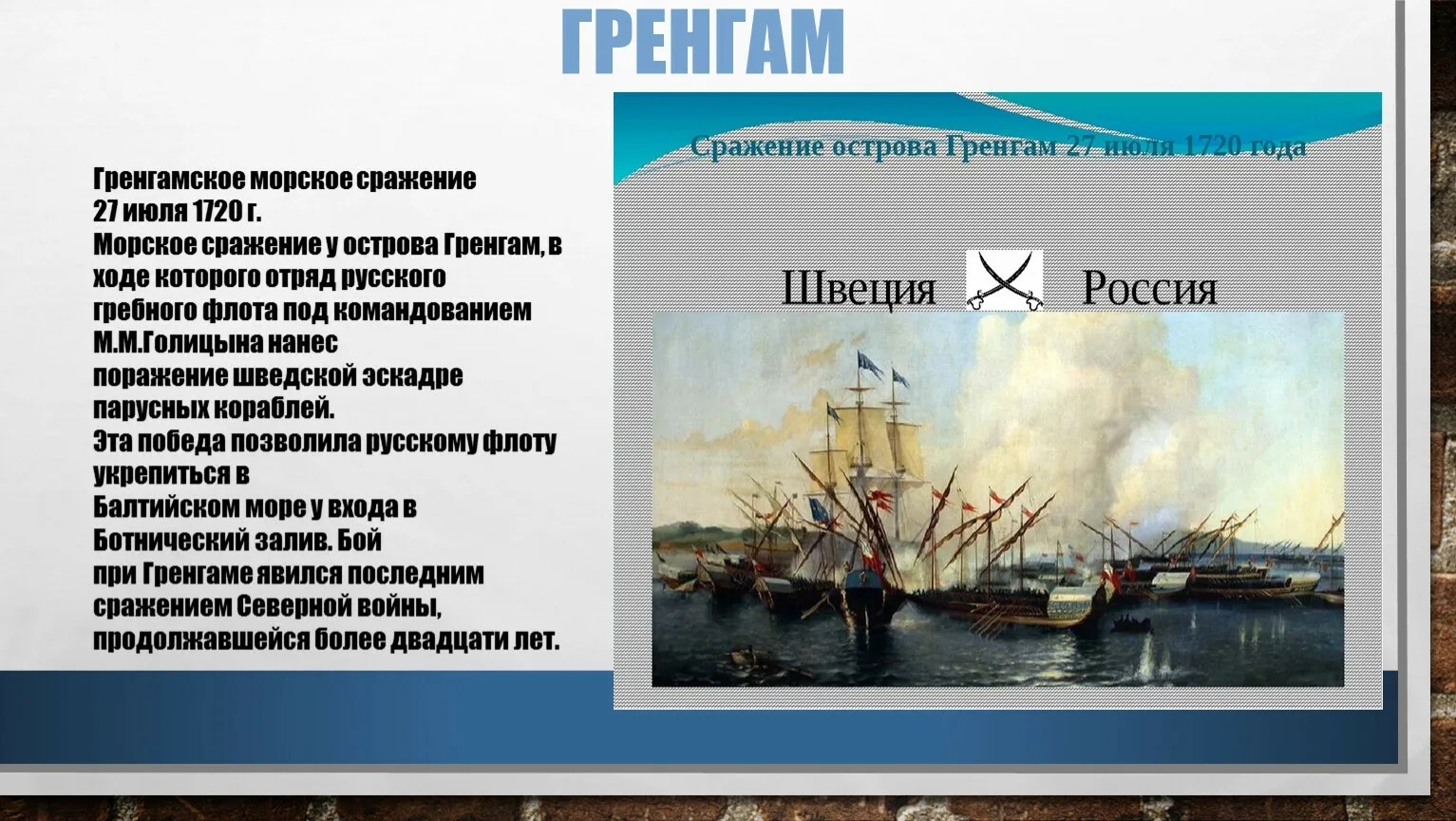 3. «Приблизивший Ништадтский мир». Гренгамское сражение, 1720 год.