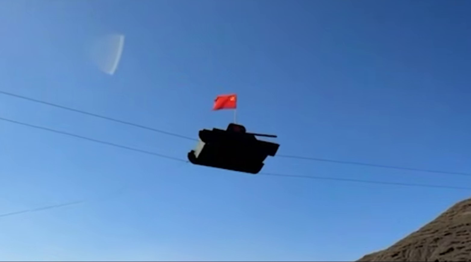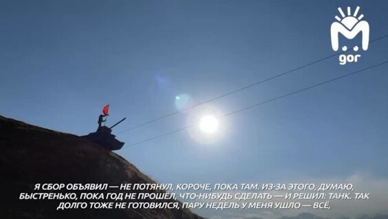 Дагестанский канатоходец Камиль Мамаев перебрался с одной горы на другую на танке.