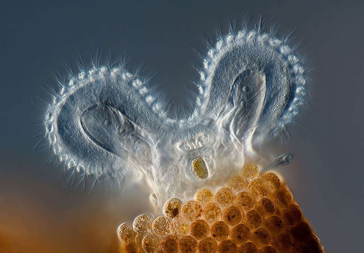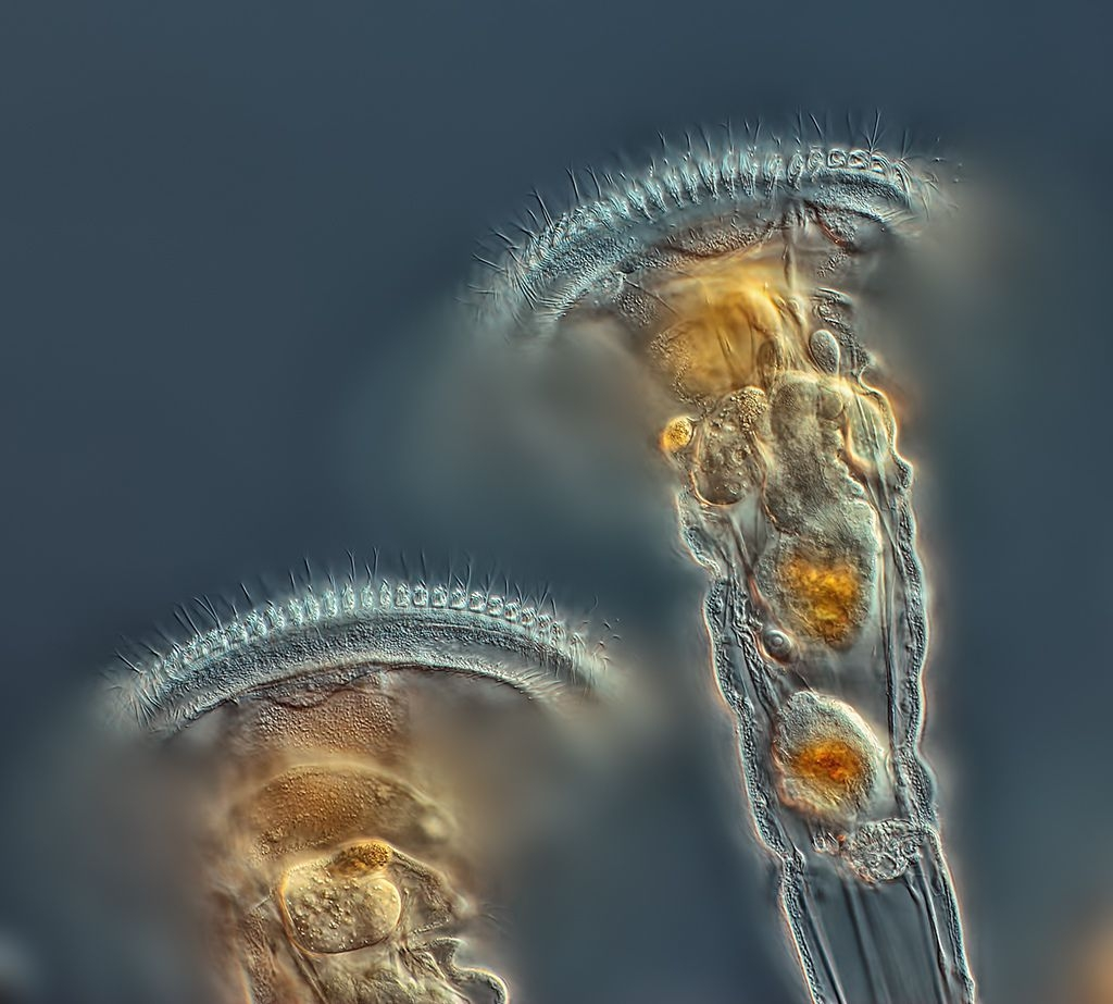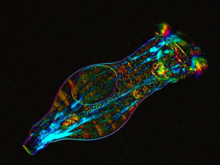 Коловратки — крошечные первичноротые животные. Это не бактерии, не слизняки и не червяки, а отдельный тип многоклеточных живых существ, ни на кого не похожий. Водятся коловратки везде: в морской воде, пресноводных водоёмах, почве, да хоть в соседней луже! На данный момент известно более 1500 видов, 600 из которых обитают в России. Почему вы их никогда не видели? Потому что разглядеть без микроскопа этих микросозданий невозможно.