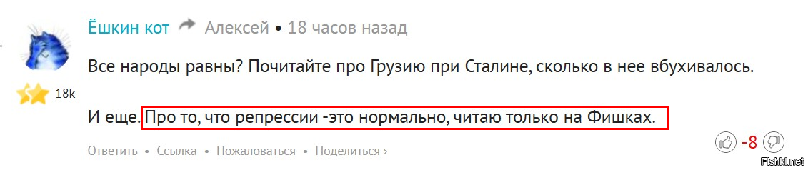 И еще. Про то, что репрессии -это нормально, читаю только на Фишках.