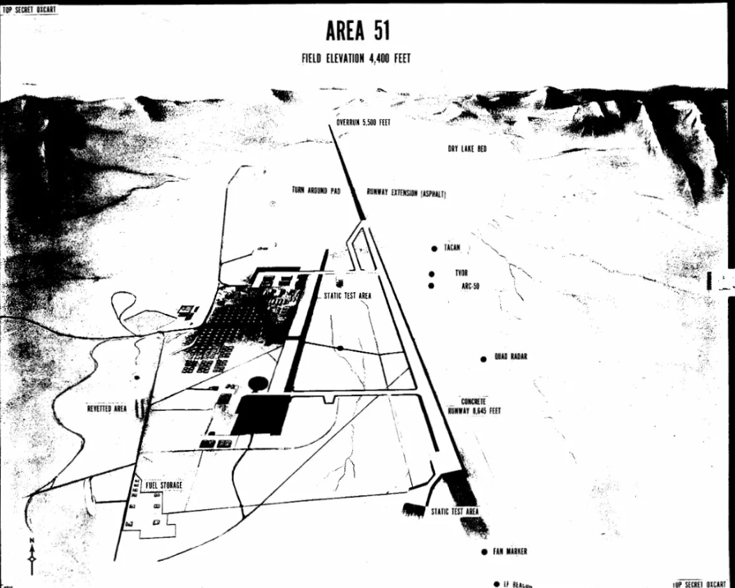 Изначально, чтобы привлечь специалистов в это глухое место, инженеры из компании Lockheed придумали для него более дружелюбное название — «Ранчо Парадайз». Позже оно превратилось в одно из самых засекреченных мест на планете.