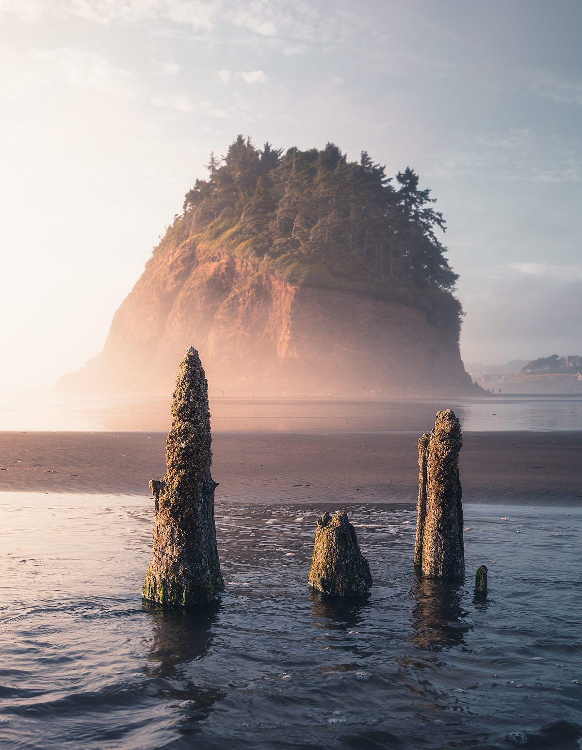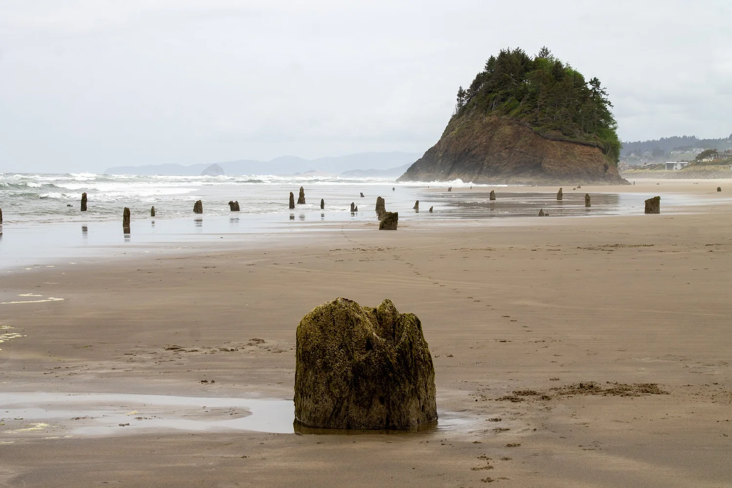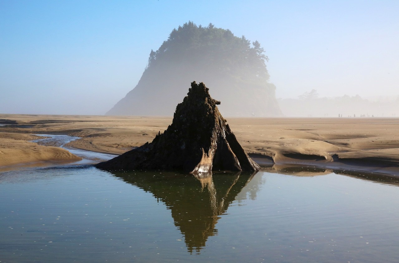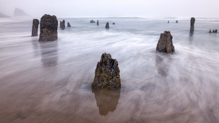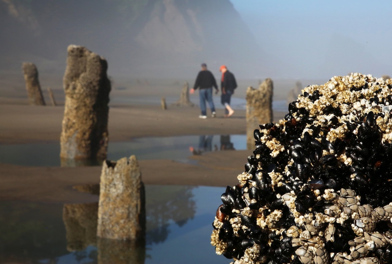 На побережье Тилламук в штате Орегон из песка и морской воды поднимаются около сотни древних прогнивших пней, словно несущих вечную вахту.