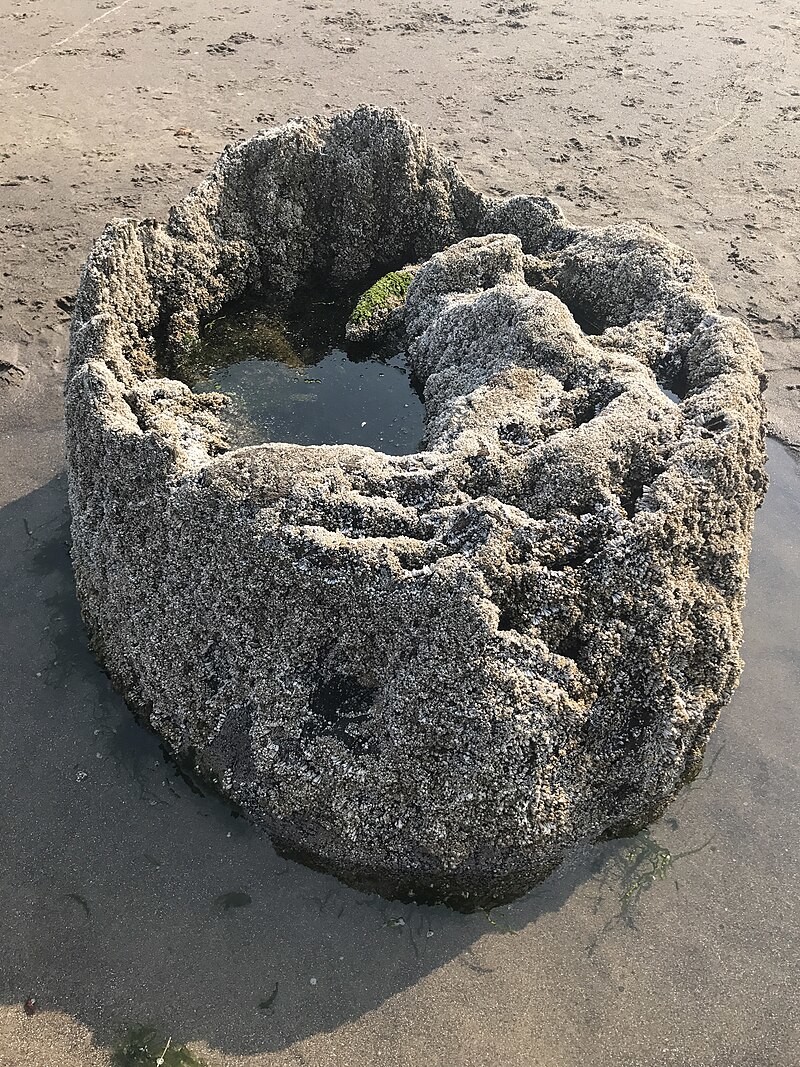 До своей подводной гибели величественные деревья достигали высоты от 45 до 60 метров. Сегодня остовы этих исполинов делят пляж с разнообразной морской живностью. Мистический лес обнажается во время отлива, а когда летом вода отступает до минимума, на поверхности появляется всё больше древних пней.