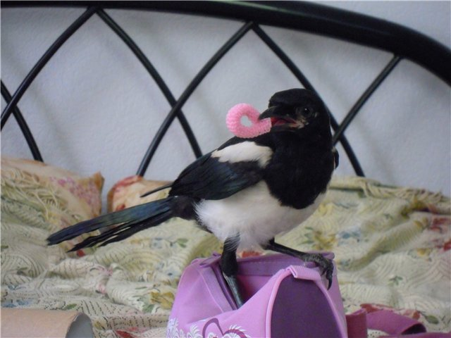 К тому же, сороки действительно иногда таскают странные вещи. Но, как выясняется, не ради коллекции, а чтобы изучить. Или использовать в качестве строительного материала, украсив гнездо.