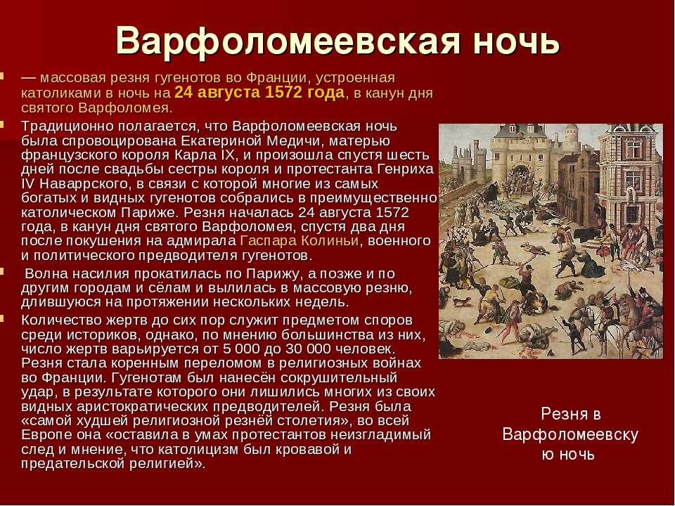 24 августа 1572 года во Франции было уничтожено несколько тысяч людей, которые относили себя к гугенотам – религиозному течению, где считали, что только Господь может решить, спасен ли человек или же нет.