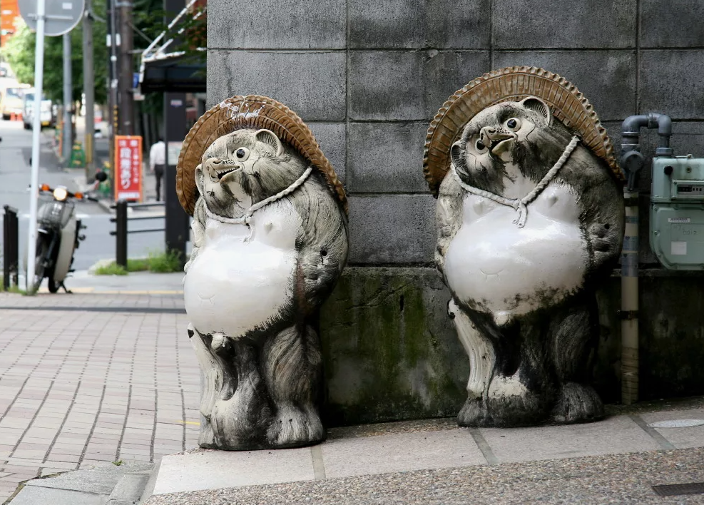 Но почему они большие не у кабана или лиса? Потому что в стародавние времени мастерам по металлу в префектуре Каназава требовалась кожа тануки, чтобы ковать золото. Его клали между кусками кожи тануки, а ее невероятная прочность позволяла растягивать золото до очень тонких пластин, почти что листов.