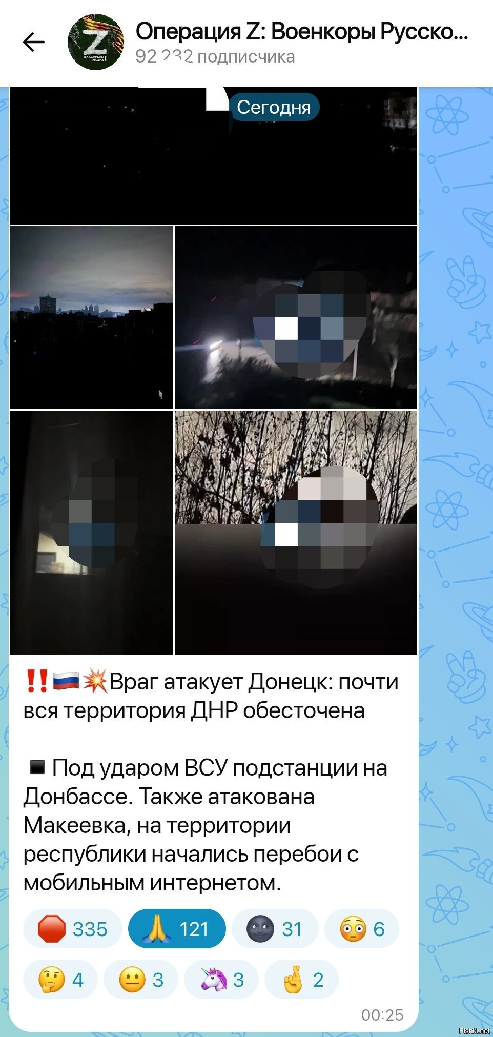 Про свет. Начались плановые и внеплановые отключения. Стараются отключать села и отдаленные районы побольше, а кого надо промку и центр города поменьше. Некоторые предприятия не отключают вовсе. В Днепродзержинске (Каменское) вонь от заводов стоит редкостная, особенно в туман и к вечеру. И в других городах заводы работают как прежде. Куют денежку для войны.