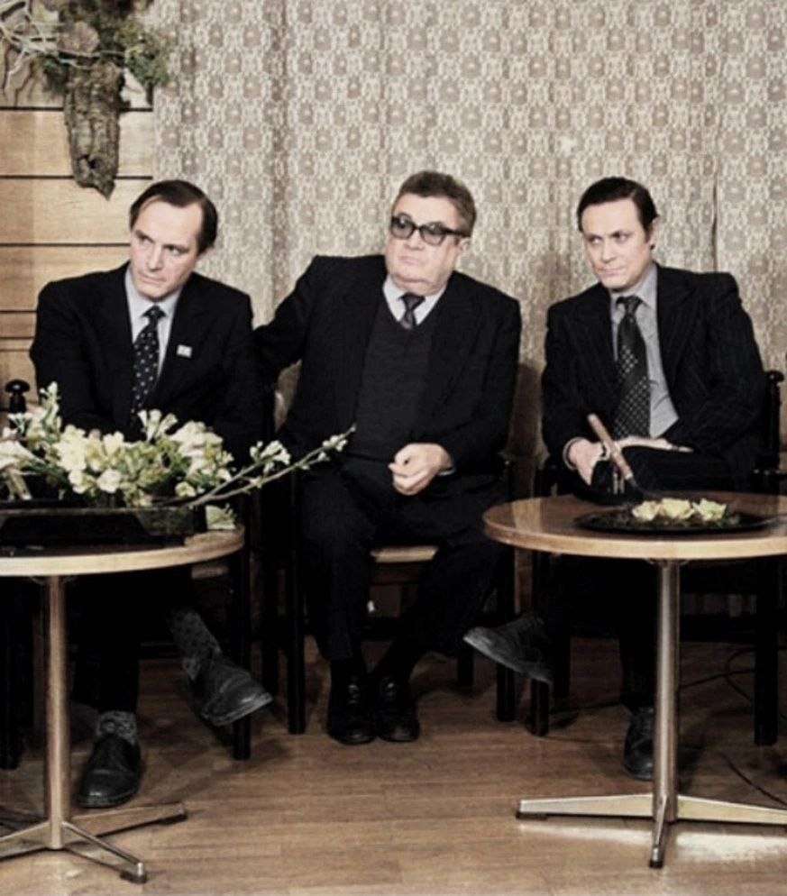Василий Лановой, Евгений Весник и Юрий Соломин во время записи передачи «Театральные встречи», 1982 год