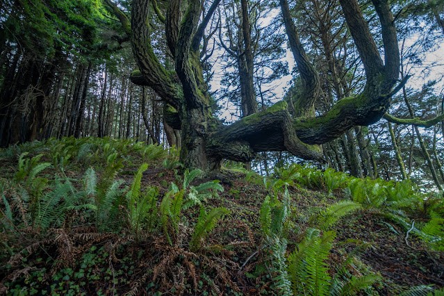 В сердце Затерянного Берега Северной Калифорнии, в месте под названием Шейди Делл, притаился уголок, больше похожий на сказочную декорацию. Это лес, где растут секвойи причудливой канделябровидной формы.