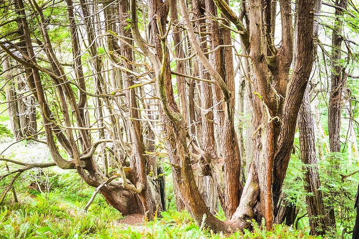 Учёные полагают, что причиной их уникального облика стали солёные морские бризы и свирепые ветра, дующие в этой местности. Постоянное воздействие стихии заставляло стволы деревьев ломаться снова и снова, но жизненная сила секвой была мощнее.