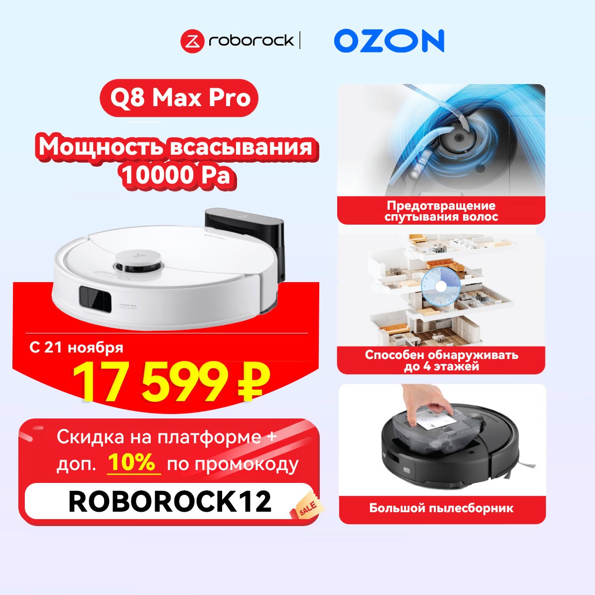 С 21 ноября по 3 декабря на робот-пылесос Roborock Q8 Max Pro действует специальная цена — 17 599 рублей, а при использовании промокода ROBOROCK12 вы получаете дополнительную скидку 10%. Подробные характеристики девайса представлены в посте.