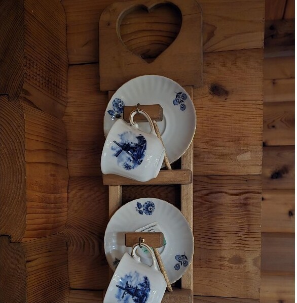 1. Керамическая кружка с блюдцем ручной работы, при этом у кружки есть отверстие в дне, а у блюдца носик для разливания