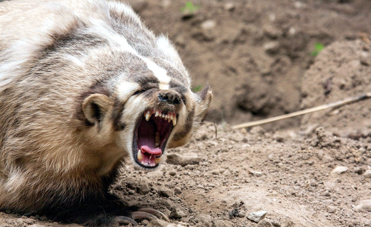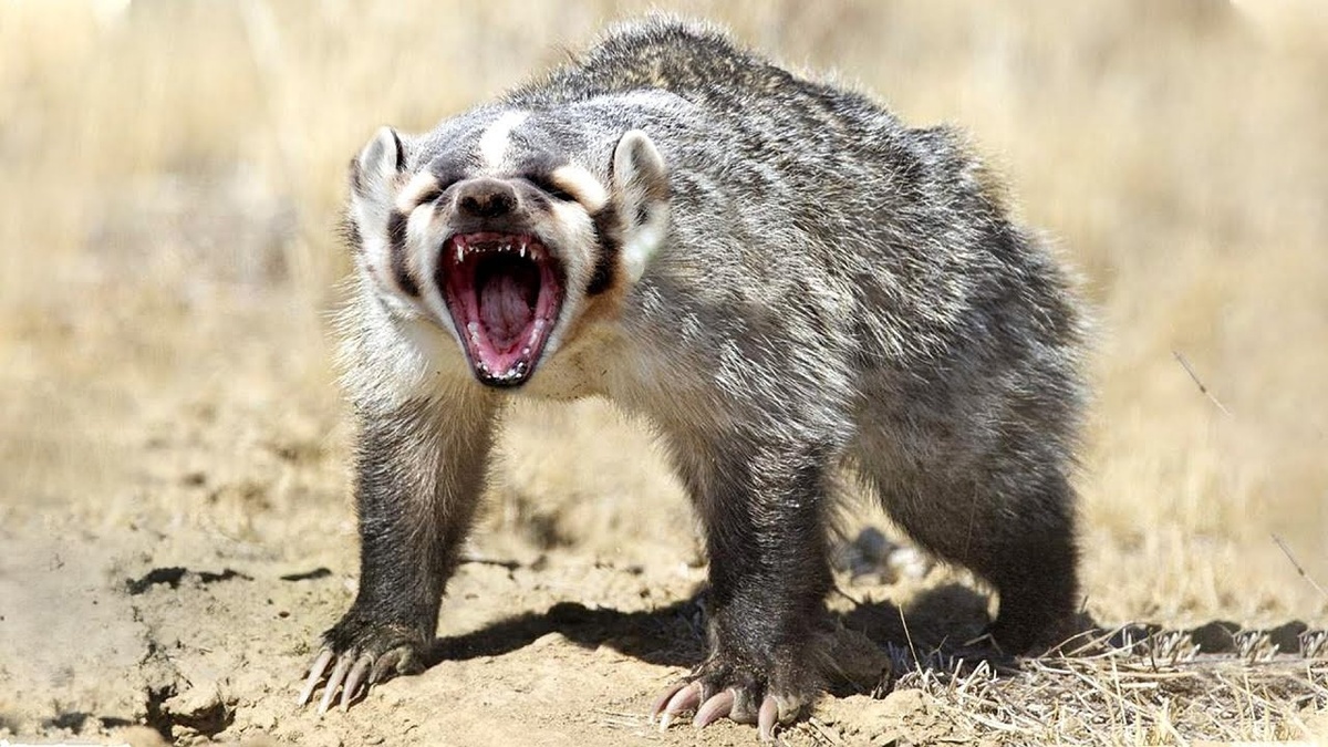 Да, в нём всего 6-15 кило веса. Но ярости на целую тонну! Столкнувшись с крупным хищником лоб в лоб, барсук рассуждает согласно старой мудрости: лучшая защита — это нападение. Визави поехавшего зверя могут стать и койоты, и стая волков, и даже гризли! Слабоумие и отвагу подкрепляют дары матушки-природы. Кожа, толщиной в полсантиметра, защищает барсука от когтей и зубов. Для сравнения: самые жесткие участки дермы у человека на ступнях и ладонях достигают толщины до 3 мм. Шкура не только прочная, но и эластичная. Она болтается складками. Схватить и обездвижить барсука — почти нереально.