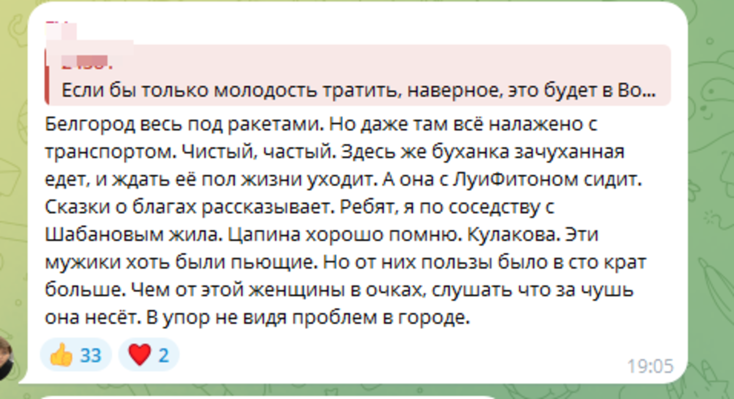 Высказывания Бородиной подверглись критике как со стороны горожан, так и руководства города.