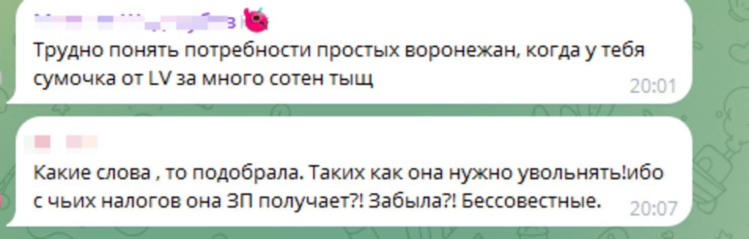 Воронежцы обиделись на замечание о токсичности и неблагодарности и нашли, в чём упрекнуть чиновницу. Во время выступления на форуме внимание участников привлекла её сумка Louis Vuitton стоимостью около 546 тыс. рублей. Согласно последним открытым данным, в 2021 году зарплата чиновницы составляла 241 тыс. рублей в месяц, и такой дорогой аксессуар, конечно, добавляет даме статусность, но даже для заммэра эта сумка дороговата.
