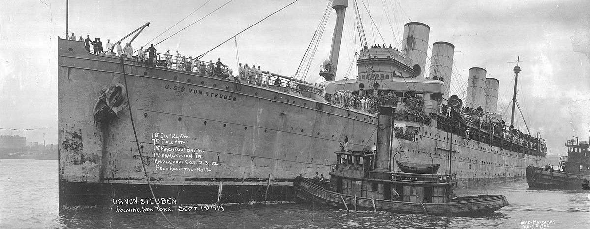 На обратном пути происшествий не возникло. 21 июля транспорт прибыл в Нью-Йорк. После ремонта, длившегося месяц, USS Von Steuben возобновил рейсы во Францию. Осенью во время двух рейсов обратно в Америку на судне возникали проблемы. В ходе первого транспорт попал в шторм, в результате которого трёх человек смыло за борт. К сожалению, найти их не удалось. В ходе же второго рейса на борту произошла вспышка испанки. Из 2700 человек на борту 400 заболели, а 34 скончались.