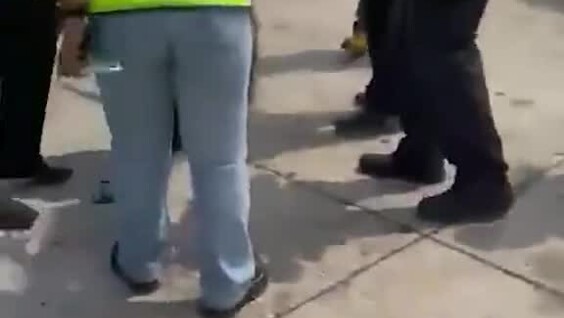 Сотрудница спокойно говорит: «Она меня бьёт. Она, чёрт возьми, бьёт меня». А в это время её обидчица кричит: «Что ты сделала?»