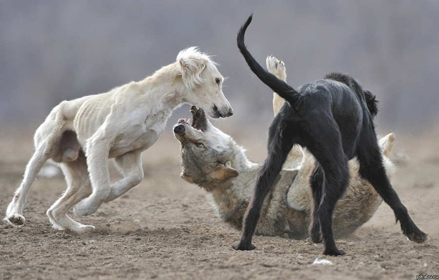 Однако в задачи борзых не входит схватка с хищником. Псы должны догнать и удержать зверя до прихода охотника — их комплекция просто не выдержит ближний бой. Поэтому борзые волкодавы всегда работают группой: сворой намного проще удержать добычу на месте и при этом самим остаться в живых.
