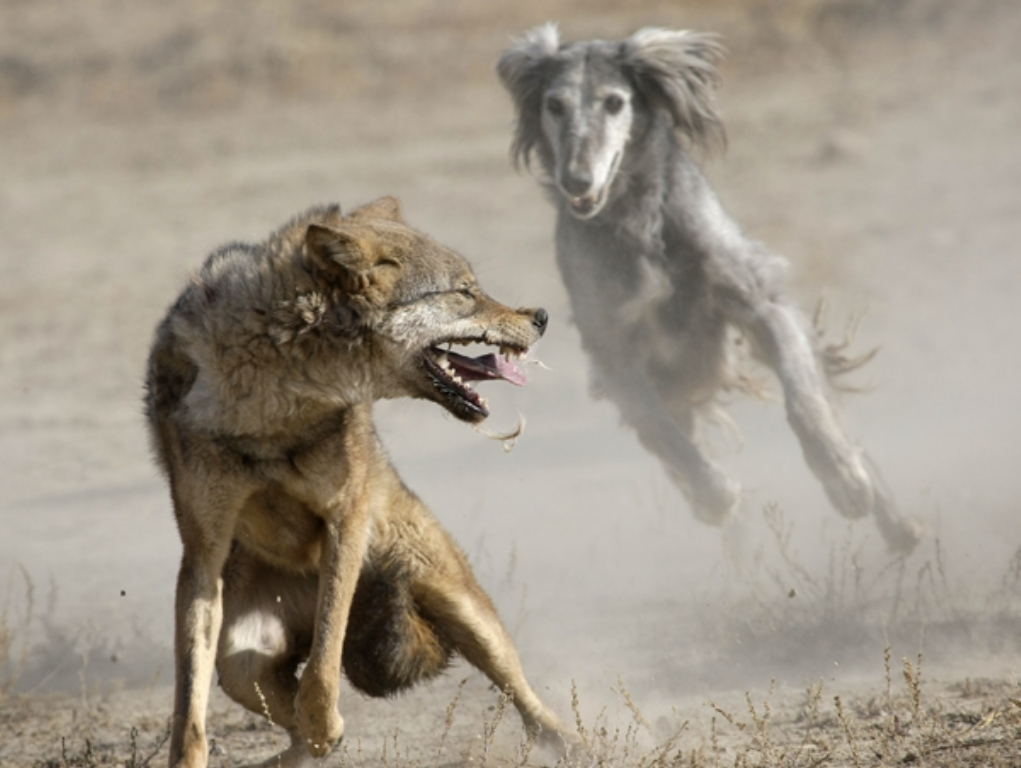Это и наша отечественная русская псовая борзая, и азиатские тазы, салюки, слюги, и зарубежные грейхаунд, ирландский волкодав, а также ещё пару десятков пород. Цель селекции этих собак была проста — охота на волка. Попутно они участвовали в охоте на другие виды дичи, но всё равно, главный трофей для борзой — дикий лесной хищник.