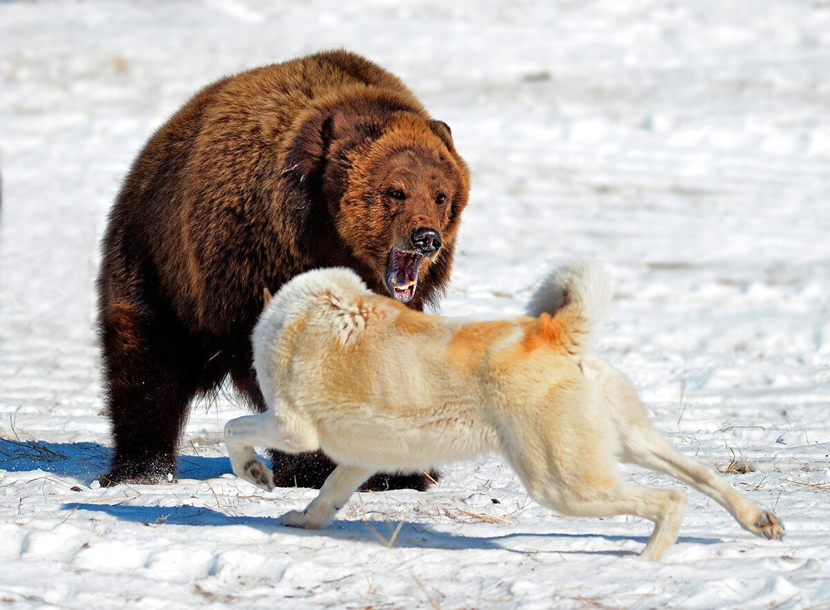 И вот тут работёнка уже посложнее, чем просто гонять серого по полю. Косолапый — противник куда более опасный. Однако задача собаки победить медведя. Не физически, а морально. Лайки — одни из самых смелых собак в мире. Их остервенелая прыть граничит с безумием.