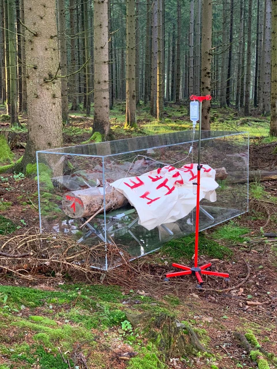 Лес превращается в больничную палату, где деревья лежат на каталках с капельницами. Этот сюрреалистичный перформанс — тревожная метафора Никласа Кастелло того, как человечество пытается «реанимировать» природу, которую само же и довело до критического состояния.