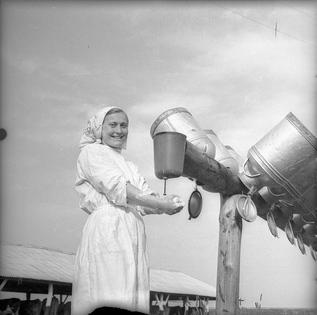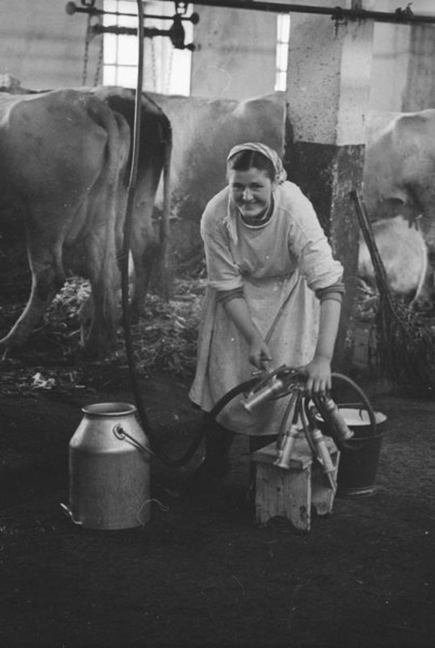 Доярка. 1949 год. Автор: Евгений Халдей. Совхоз «Гигант».