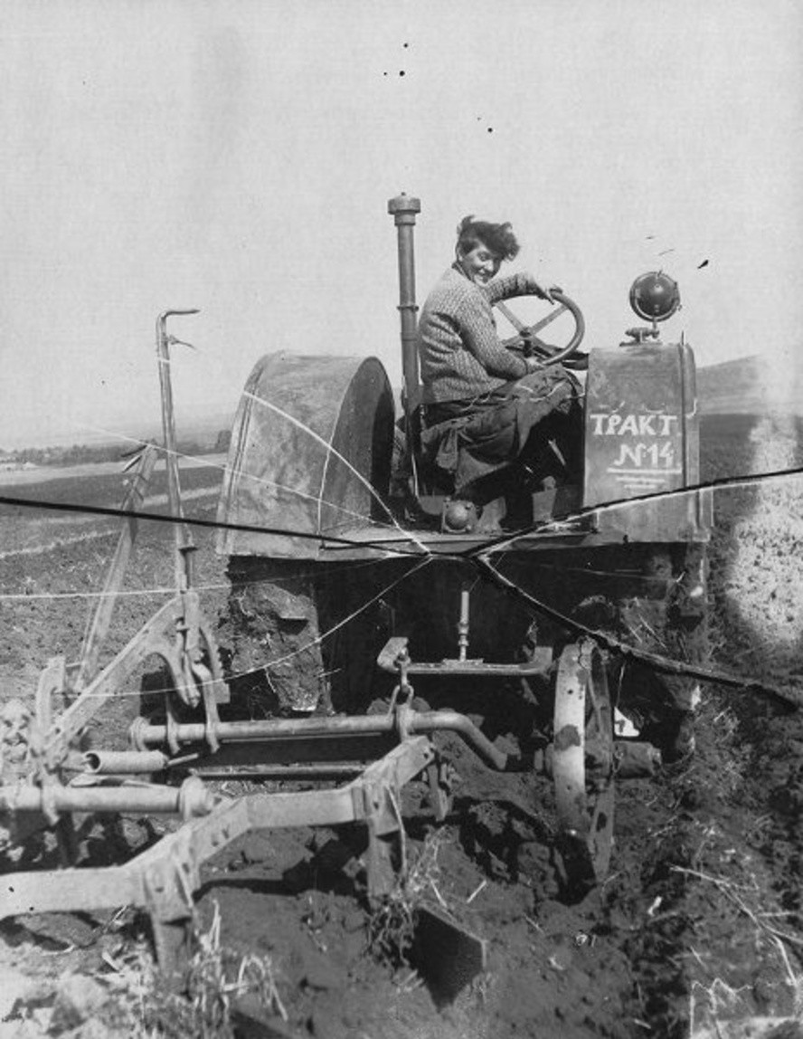 Первая женщина-тракторист Паша Ангелина. 1935 год. Автор: Евгений Халдей.