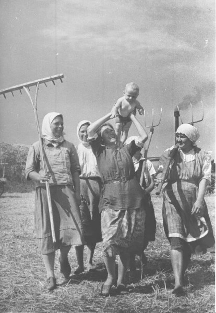 Девушка со снопом. 1940 год. Автор: Евгений Халдей. Белорусская ССР, Гродно.