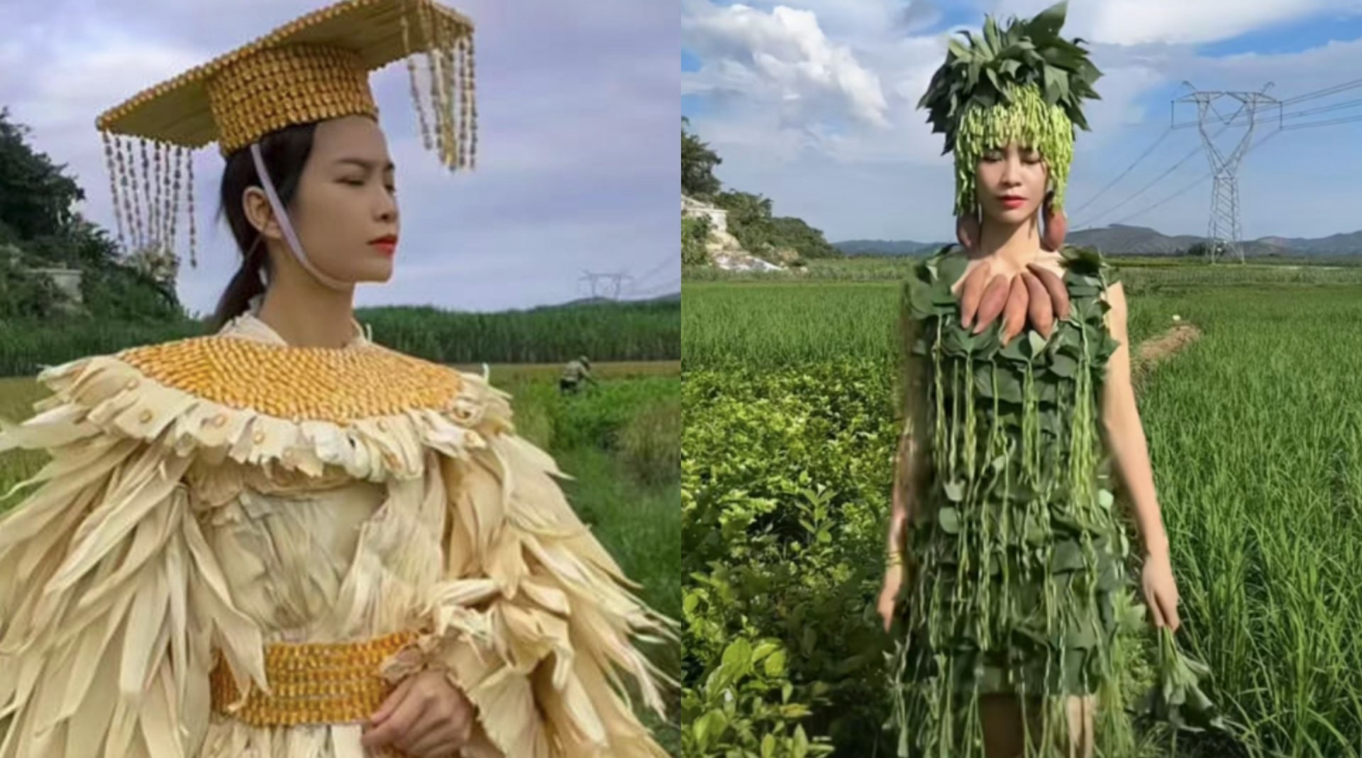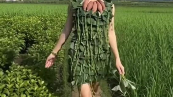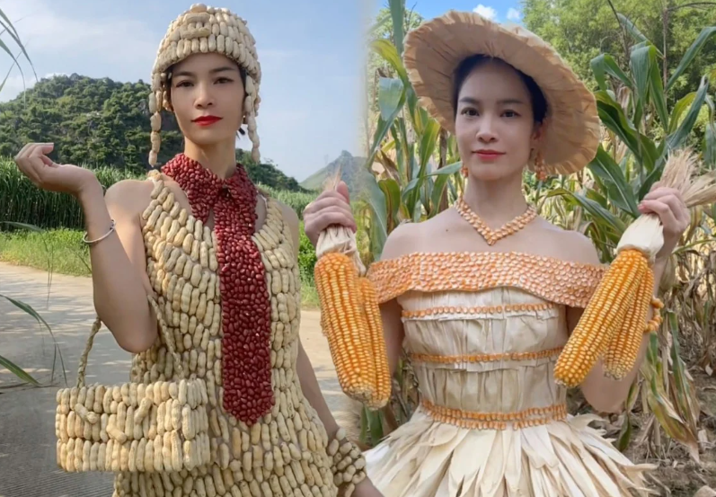 В Китае жительница сельской местности прославилась в Сети своими платьями, изготовленными из натуральных материалов, таких как арахисовая скорлупа, кукурузные листья, красная фасоль, сладкий картофель и зерна кукурузы.