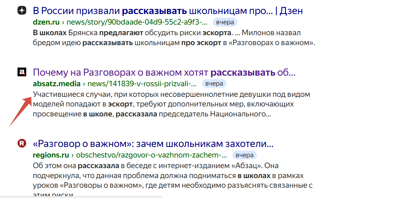 В России предложили включить тему опасности эскорта в программу «Разговоры о важном» — внеклассных обсуждений для школьников, которые проходят по понедельникам. С инициативой выступила председатель Национального родительского комитета Ирина Волынец, отметившая, что многие подростки попадают в эскорт, будучи введёнными в заблуждение обещаниями успешной карьеры модели, особенно через конкурсы красоты.
