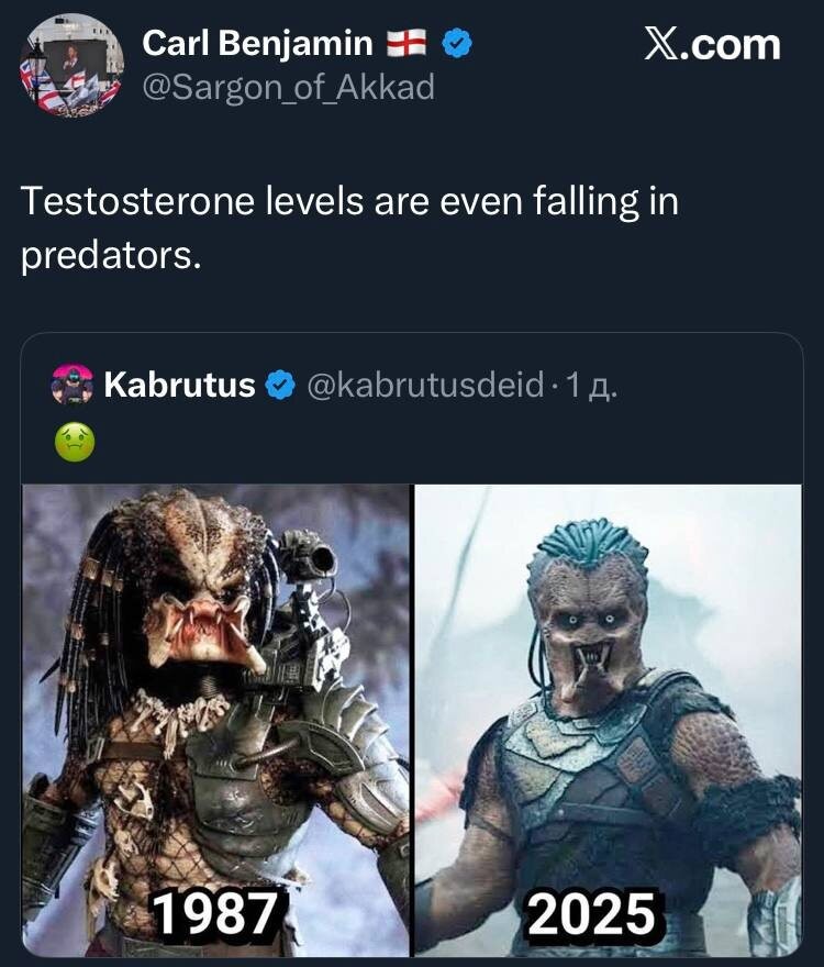8. "Уровень тестостерона падает даже у хищников". Не удивлюсь, если новый хищник и с гендером пока не определился