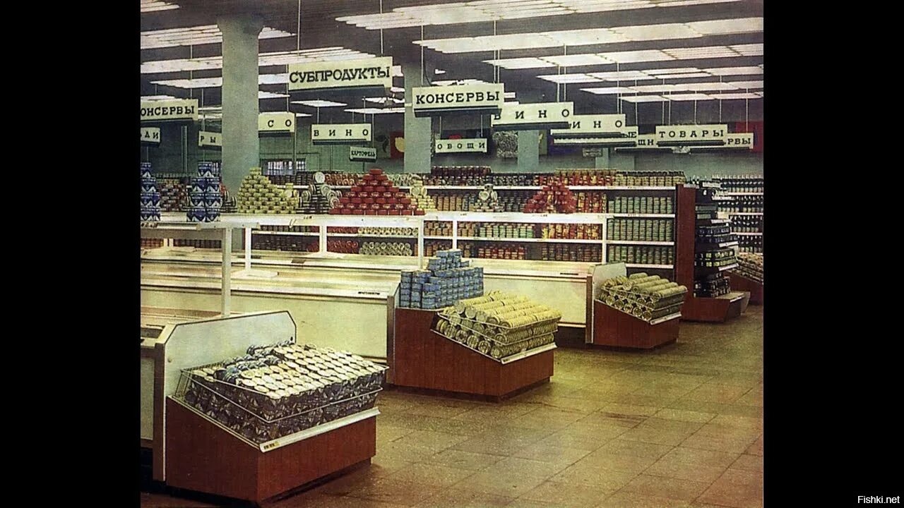 Большие сомнения у меня, что во времена СССР алкоголь стоял в универсамах самообслуживания.