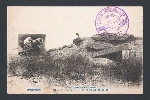 Японцы не стали демонтировать эти орудия. А украсили ими вход в свой храм. На Перепелиной горе. Как вы видите одно орудие получило повреждения щита. В левой части.