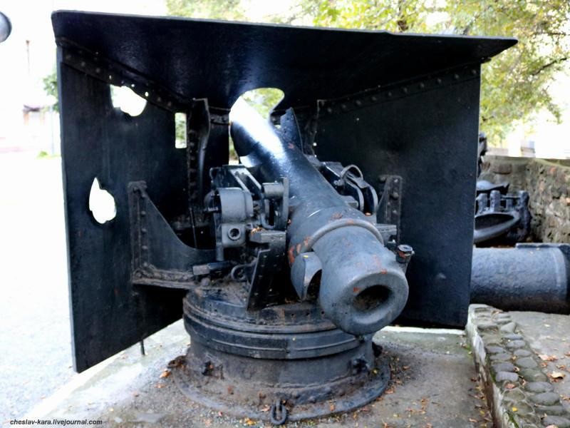 Одно из этих орудий, как раз с боевыми повреждениями в левой части находиться во Владивостоке.