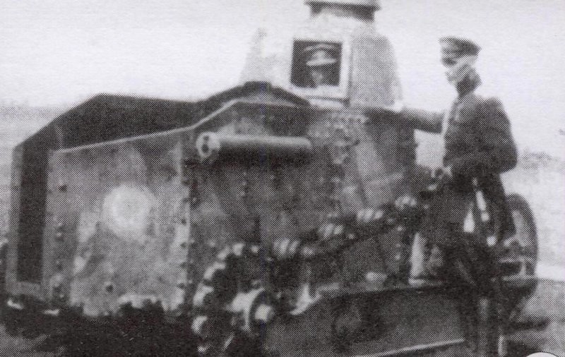 Так вот 18 марта 1919 года 1-я Заднепровская бригада Н.А. Григорьева, из состава 2-ой Украинской Советской армии (2-я УСА) в бою с греко-французскими войсками под станцией Березовкой (недалеко от Одессы) захватили 4 танка. Один из трофейных танков было решено отправить в Москву в подарок товарищю Ленину к Дню всемирной солидарности трудящихся (1 мая). Привлекает внимание фигура комбрига Григорьева, которого советские историки обычно называли «атаманом». Григорьев – царский офицер, участник Русско-японской и Первой мировой войны, левый эсер, организатор повстанческой войны против австро-германских оккупационных войск, против войск Гетьмана Скоропадского, интервентов Антанты, ярый антисемит, прозванный «жидоедом». В феврале 1919 года он перешел на сторону Советской Украины и уже в этом качестве продолжил борьбу с интервентами. За подвиги в этой борьбе награжден орденом Красного знамени. В мае того же года возглавил антибольшевистское восстание, в ходе которого объединился с войсками другого красного командира – анархо-коммуниста Нестора Махно («Батька Махно»), а в июле был убит якобы махновцами за связь с Деникиным и за еврейские погромы (Махно был активным противником антисемитизма!). Бригада Григорьева вместе со своим командиром прошла весь его боевой путь. Так вот, эти самые григорьевцы и воевали с греко-французскими войсками. Именно они и решили отправить один из захваченных ими французский танк товарищу Ленину. Но про григорьевцев мы ещё вспомним.