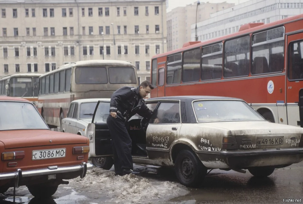 Даже автобус междугородный на переднем плане чище, чем машина этого "кумира" 90-х!)))